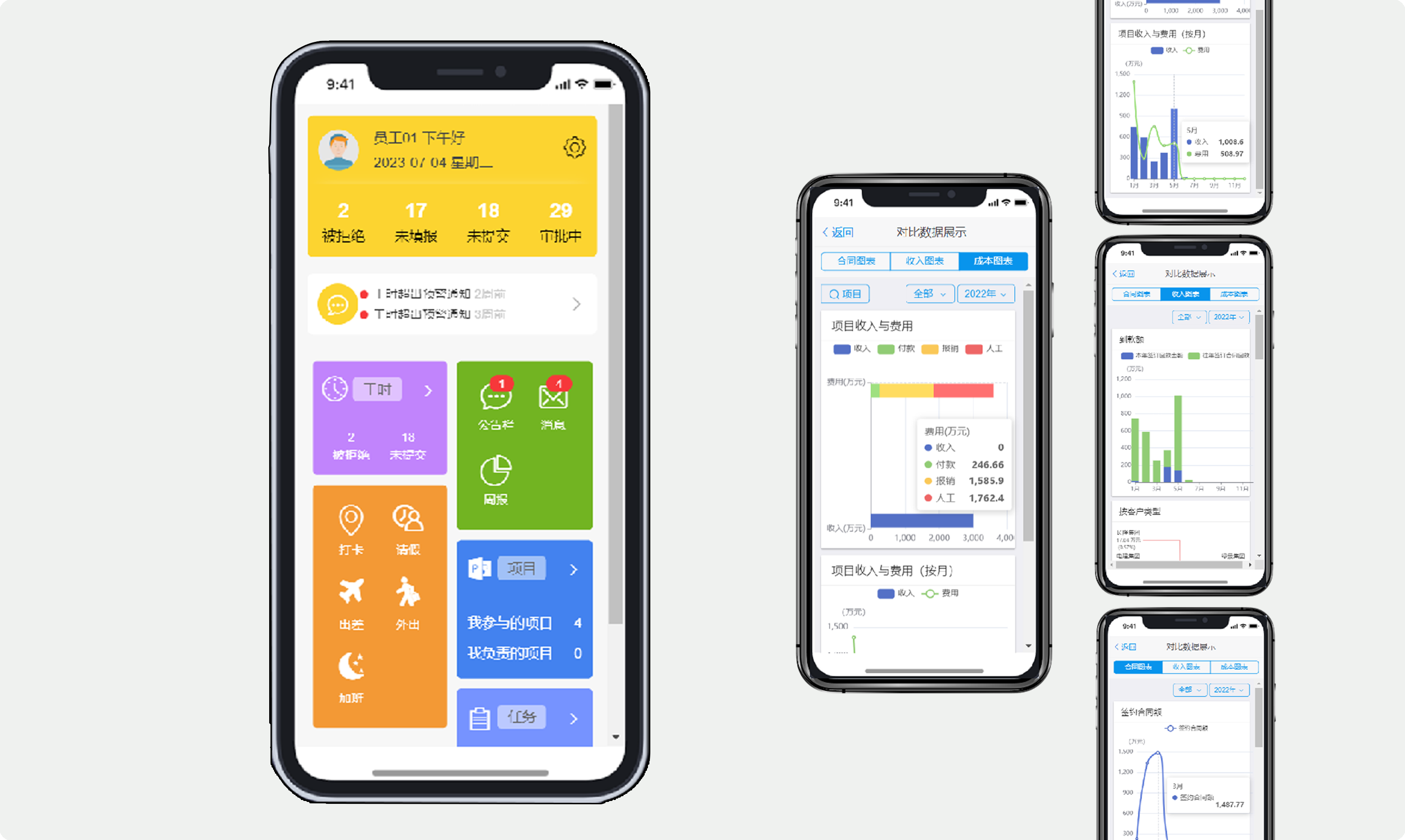 记录和跟踪员工每天在项目、非项目上的工作内容及所耗费工时,经过有效性审核的工时和内容,实现高效、低成本收集不同项目下每个成员所花费的实际工时(正常工时,加班工时,休假工时等),核算出项目各自的人工成本值。