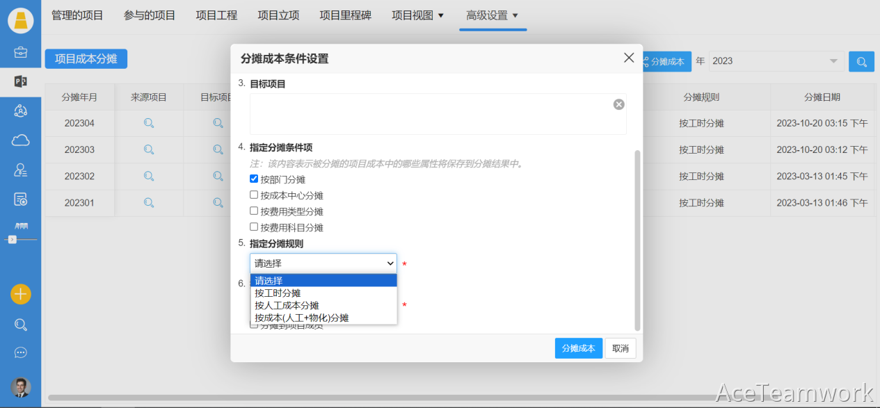 不同公司成本分摊规则有可能不同,如果需要快捷、准确的计算出不同项目的“分摊成本”是多少,则需要用到“项目成本分摊”功能。可以根据不同公司要求,以及对应的分摊规则,分摊成本到“项目、项目任务或者项目成员”。