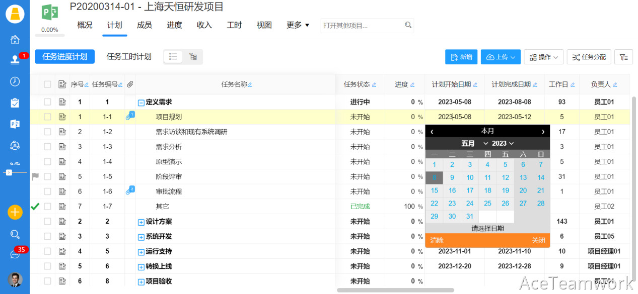 AceTeamwork 系统通过内置的监控、提醒、归档等功能,贯穿项目全生命周期,解决任务遗漏、信息偏差、责任模糊等痛点,实现管理流程自动化与高效化,核心赋能功能操作如下: