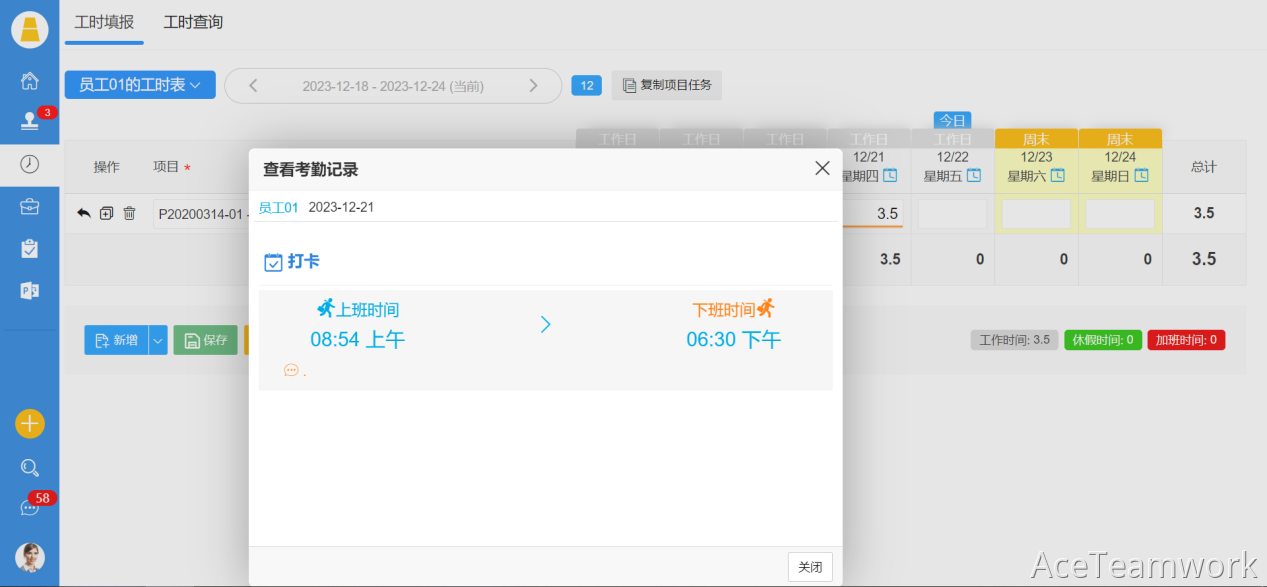 本章将详细介绍“AceTimesheet工时记录软件”如何通过智能化控制机制,确保员工填写的工时数据真实、有效且符合管理要求。系统主要通过与考勤数据联动、与项目预估工时对比,并结合多层级的管控设置,实现对工时填报范围的全方位管理,从而提升工时数据的准确性与项目管理的可控性。