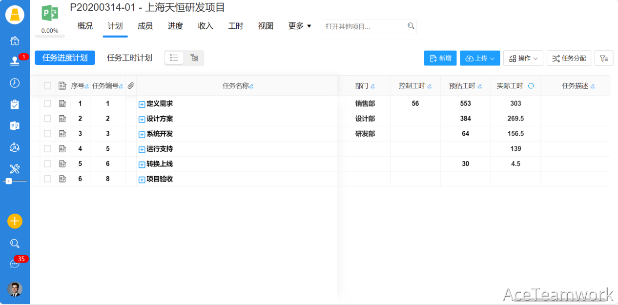 2、项目/任务信息页面,可以设置预估工时/控制工时,也可以显示预估工时、控制工时以及实际工时的对比。