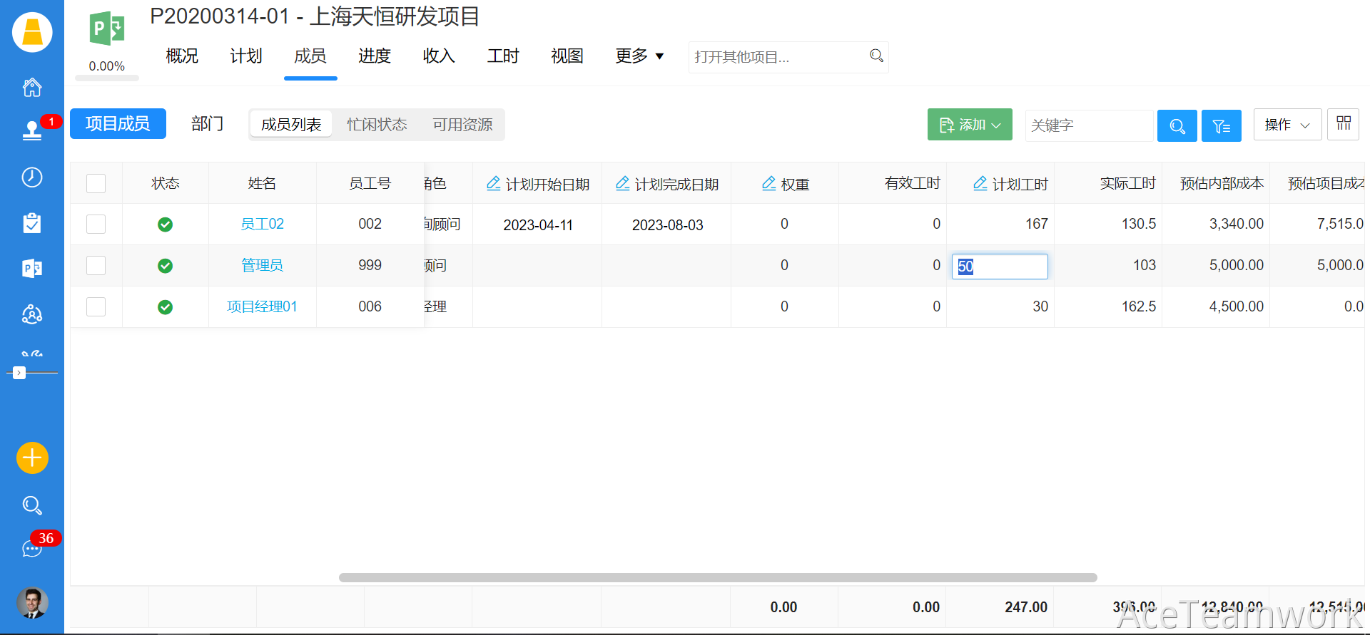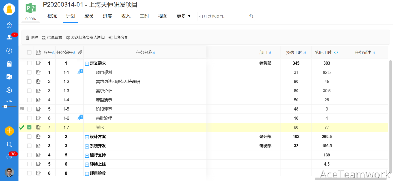 文章标题:如何在AceTeamwork项目过程及成本核算系统中规划任务与资源工时;