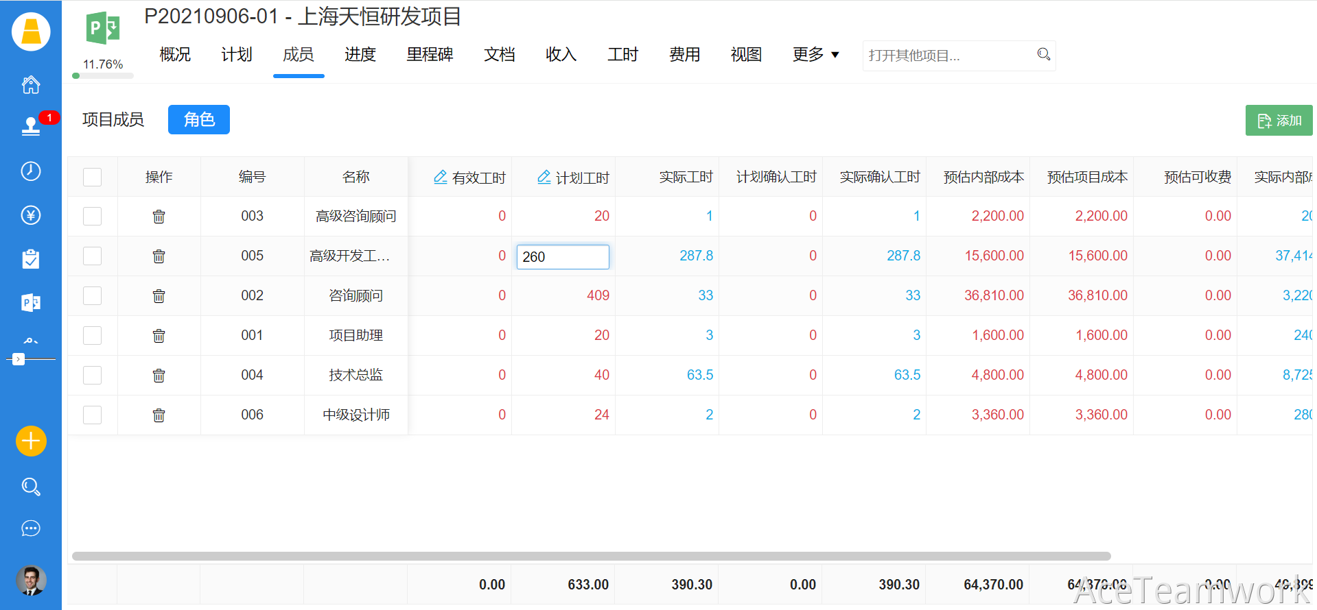 在项目管理中,合理预估工时是保障项目有序推进、资源有效分配的基础。本文将为您详细介绍在“AceTeamwork项目过程及成本核算系统”中设置项目预估工时的两种核心方式:一是针对具体任务进行直接设定,二是基于项目成员或角色进行资源规划。这两种方式相辅相成,帮助您从不同维度精准规划项目工作量与进度。