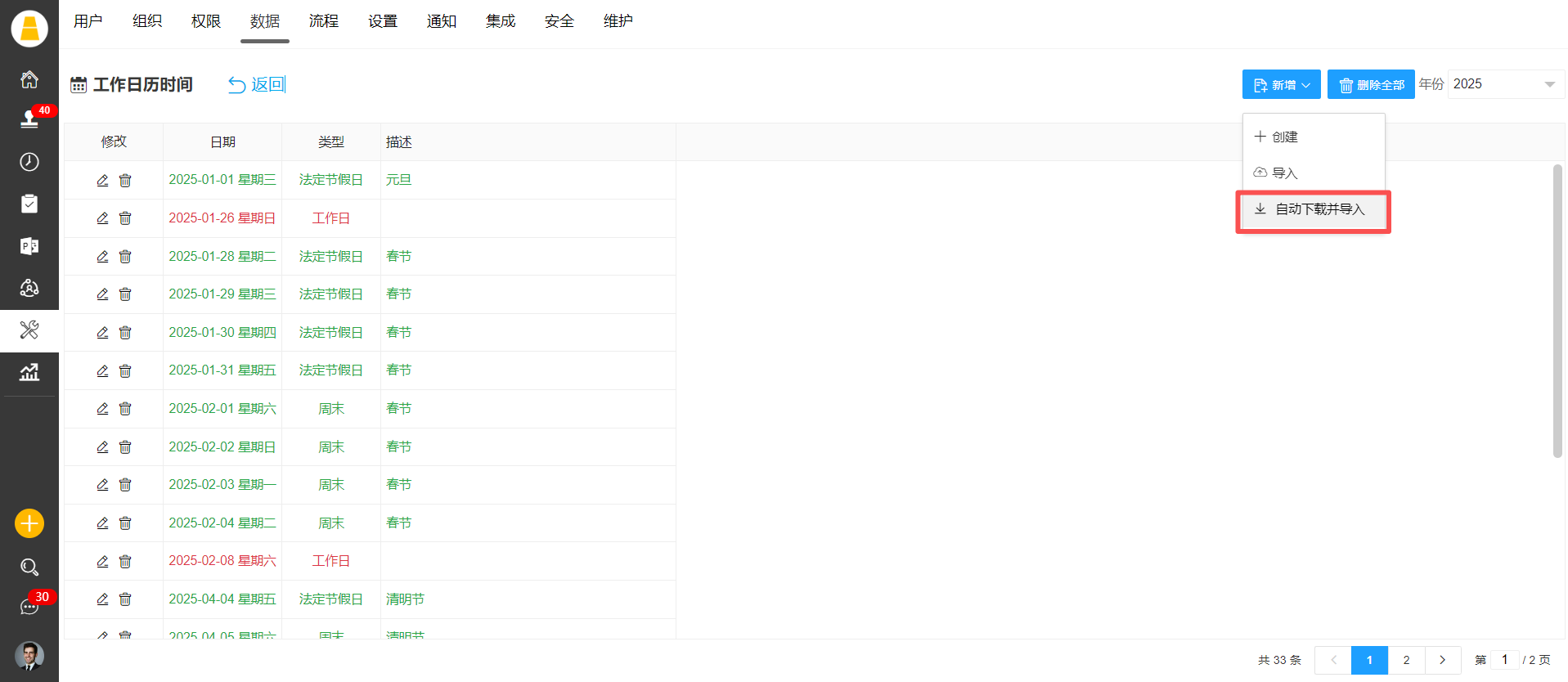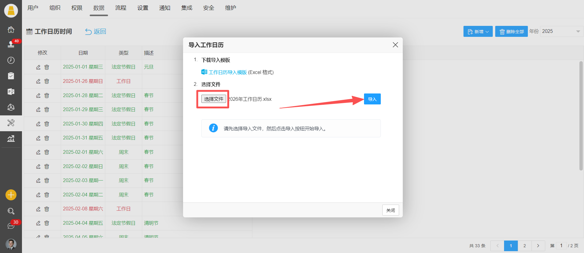 本文将为您清晰演示两种更新工作日历的操作流程,请根据您公司的网络环境选择对应方案。