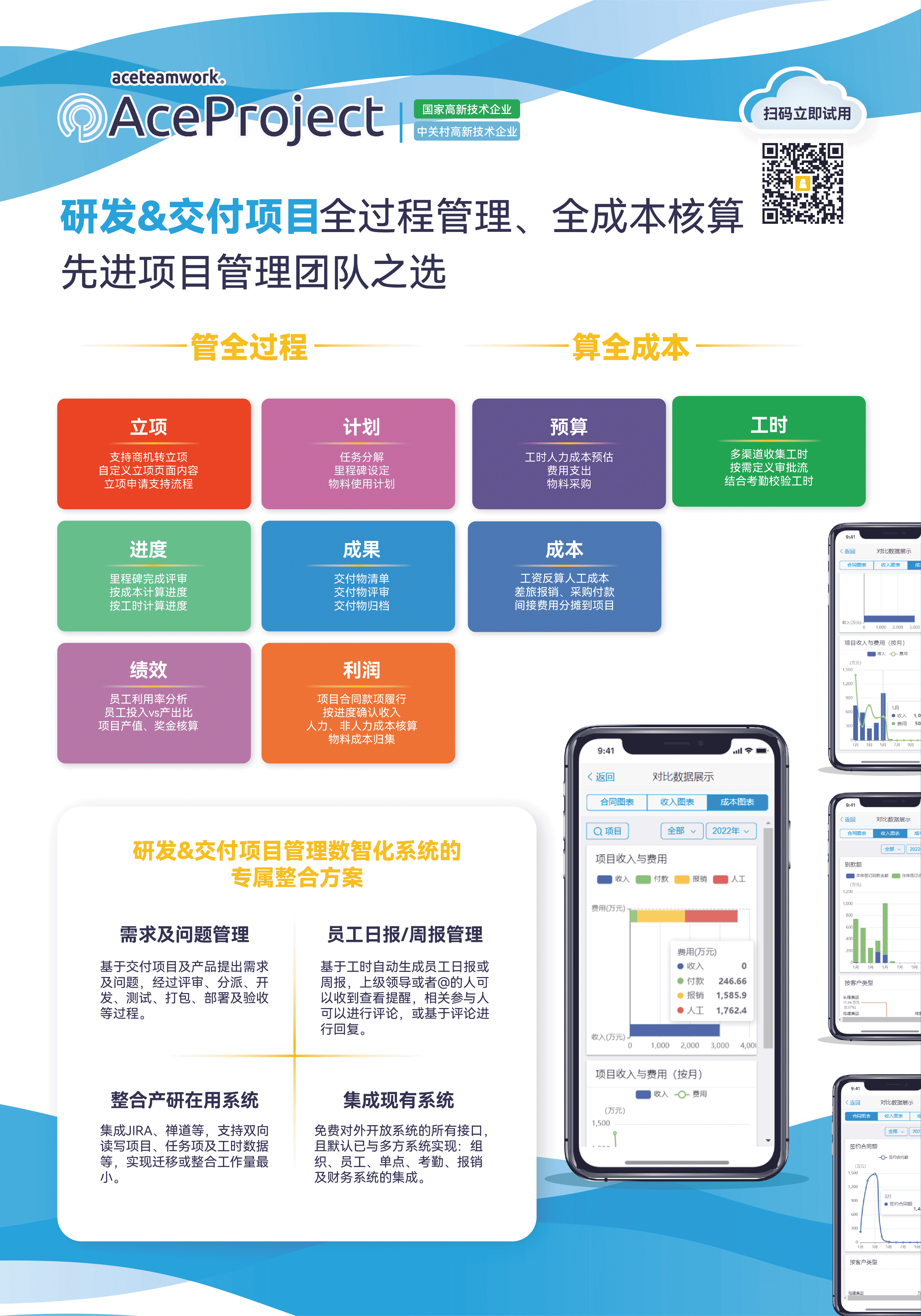 AceTeamwork项目团队协作系统,全面打通研发与交付关键环节,实现项目流程的全景可视与成本的精益管控,深度赋能企业项目管理迈向更智能、高效的全新阶段。