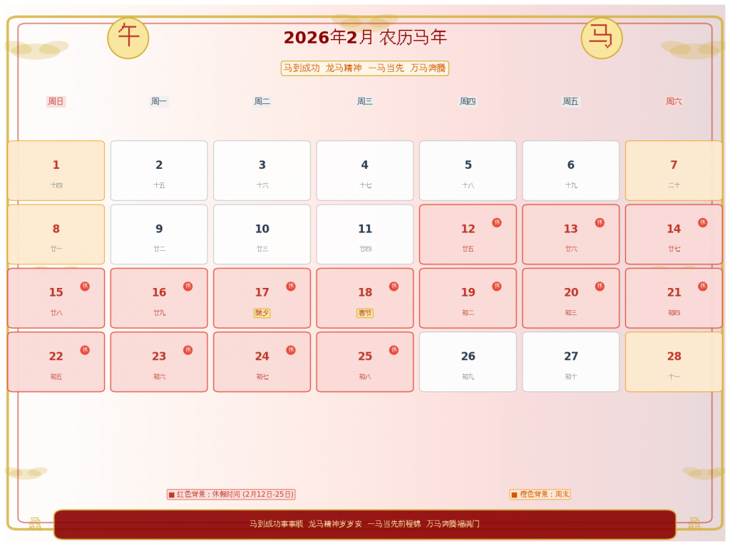 2月12日~2月25日放假,共14天
